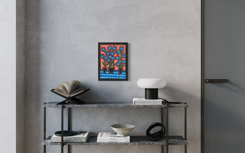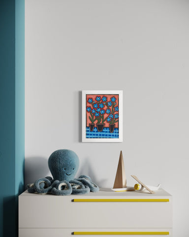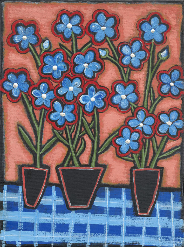 Joyce Wynes - "Floral: Blue Flowers in 3 Vases"