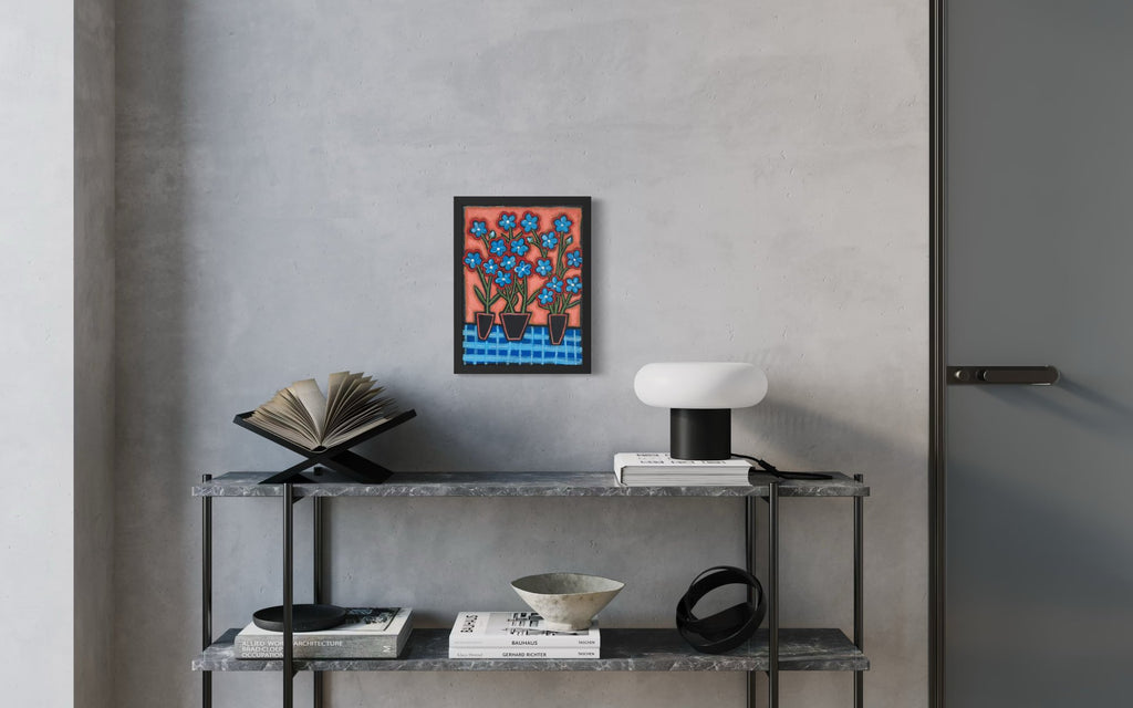 Title: Floral: Blue Flowers in 3 Vases