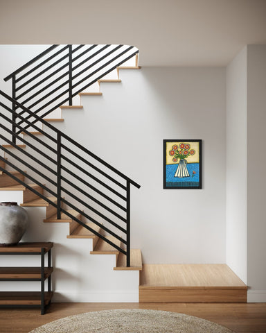 Joyce Wynes - "Floral: Red Flowers and Curly Q’s"