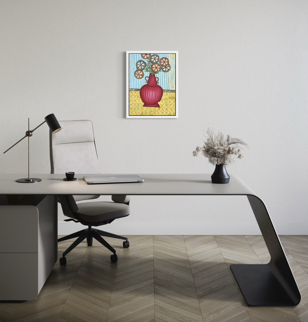 Joyce Wynes - "Floral: Whirlybird Flowers in Red Vase"