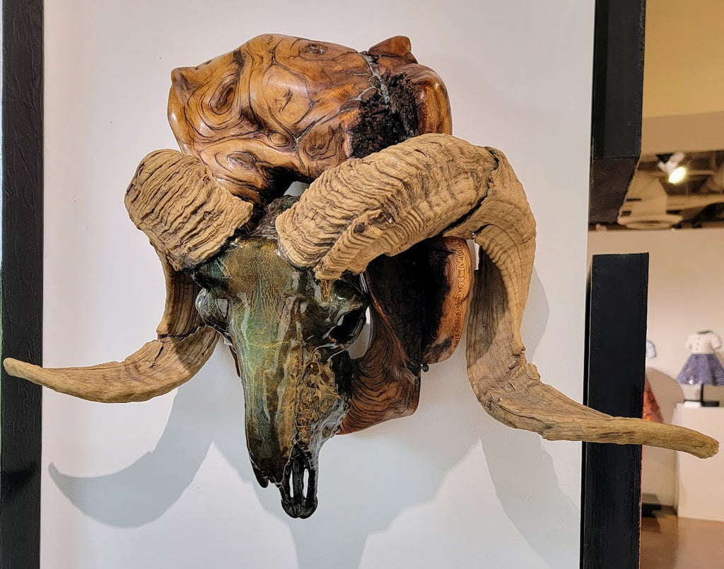 Medium: Ram Mount, Resin, Turquoise, Ironwood