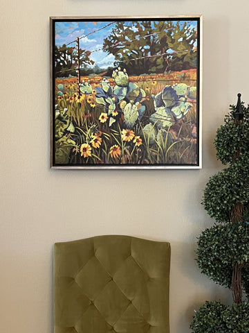 Medium: Acrylic on canvas. Floater frame with champagne finish.