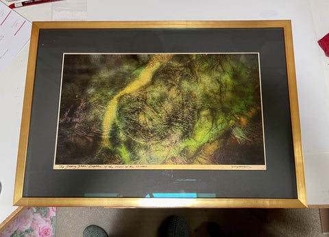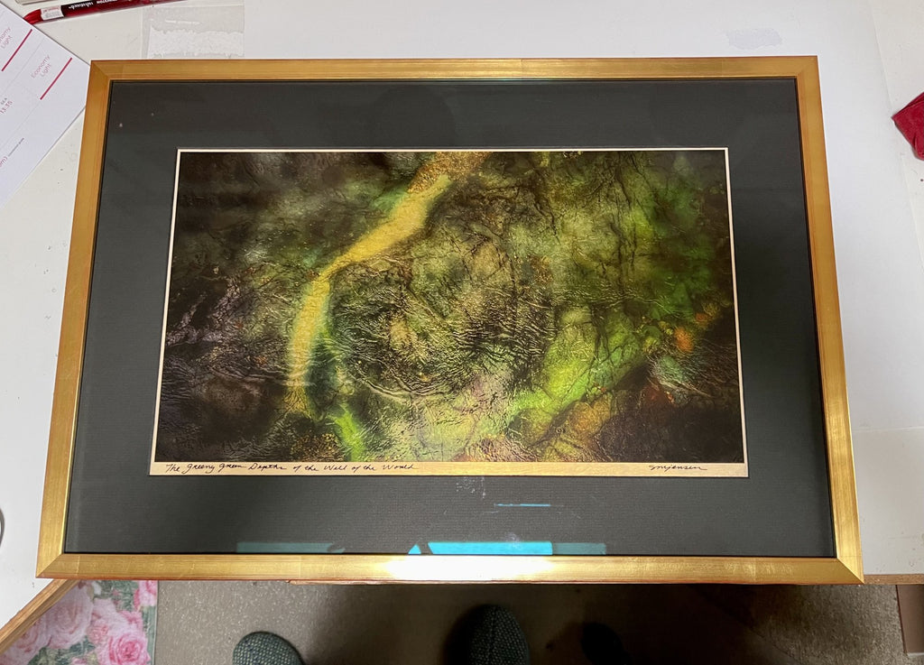 Artist: Sandy Brown Jensen Title: The Greeny Green Depths of the Well of World Medium: Multi-Media Original: Gilded Photography (24K Gold Leaf) Dimensions: 15"h x 22"w