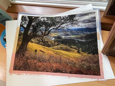 Artist: Sandy Brown Jensen Title: The Peaceable Kingdom, North Umpqua Medium: Split-tone gilded photography w/ silver, palladium, copper, and 24k gold Dimensions: 16"h x 20"w