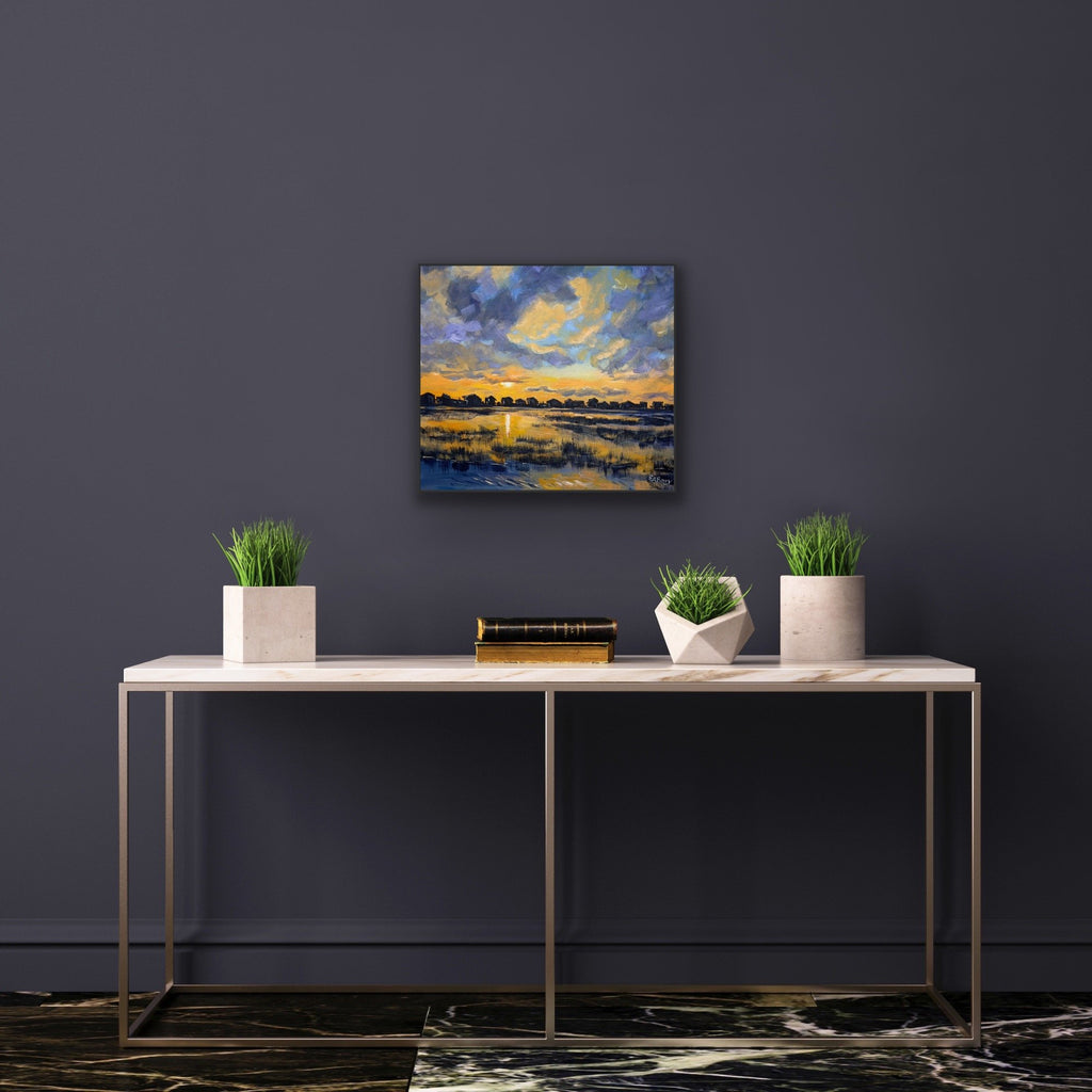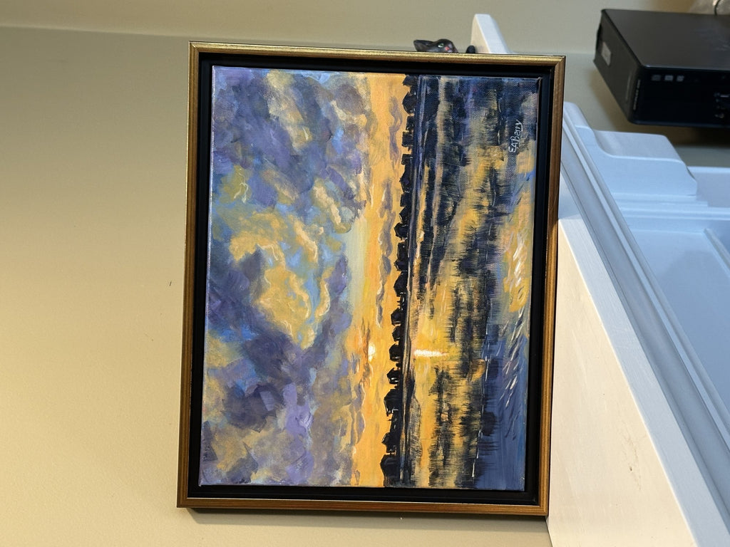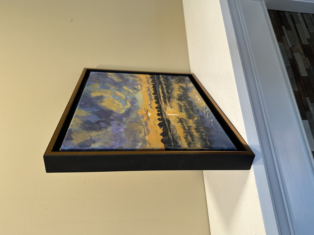 Medium: Acrylic- in walnut floater frame w/antique gold trim
