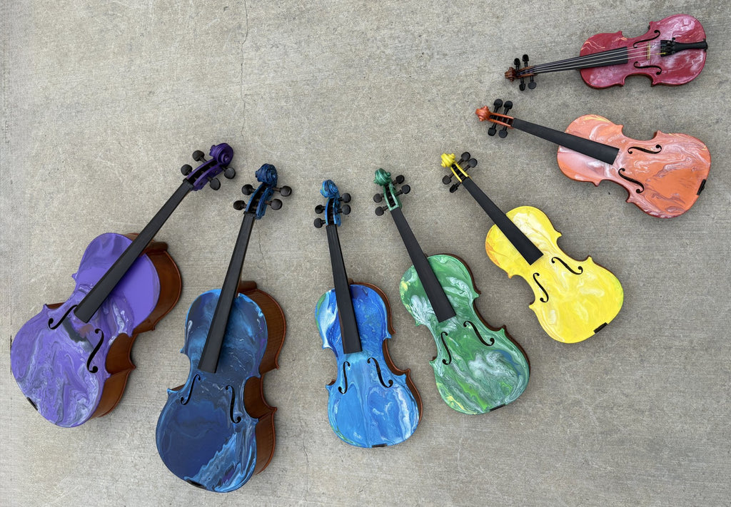 Katherine Faubion - "Rainbow Array, ranging from 1/16 size violin to 1/10 size cello, available separately"